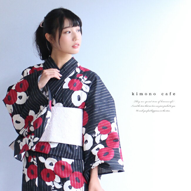 レディース 浴衣 単品 縞椿 Sサイズ フリーサイズ TLサイズ ワイドサイズ