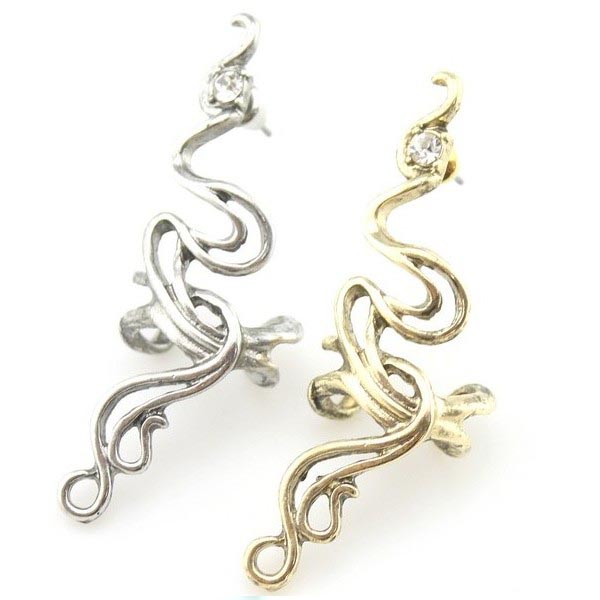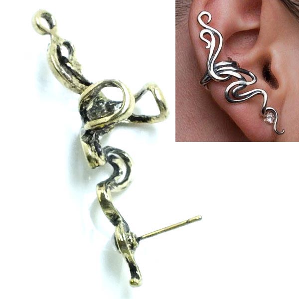大きな波をモチーフにしたイヤーカフにジュエルピアスをセットしたイヤーラップピアス。